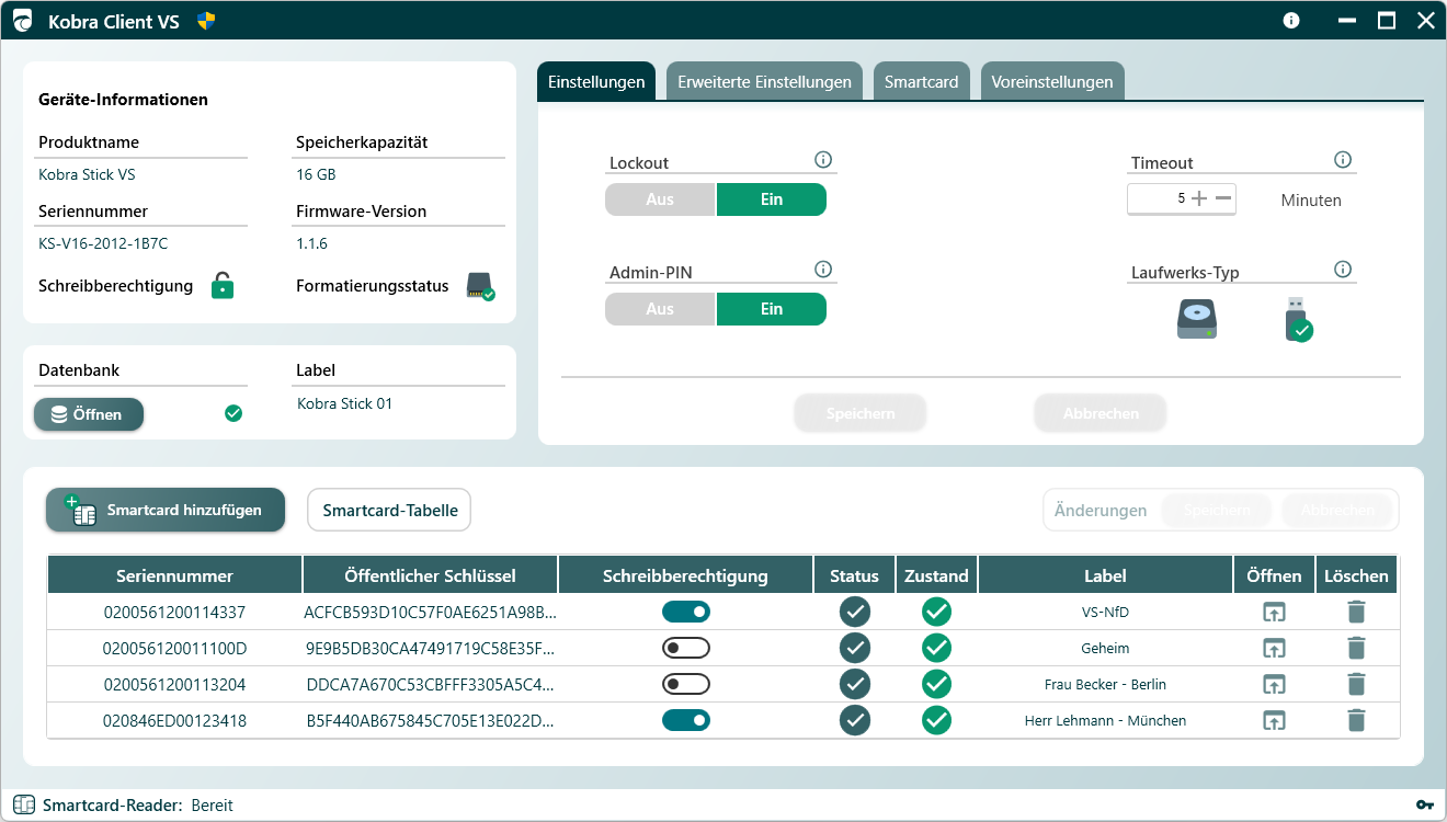 Verwaltungssoftware für Kobra VS-Datenträger