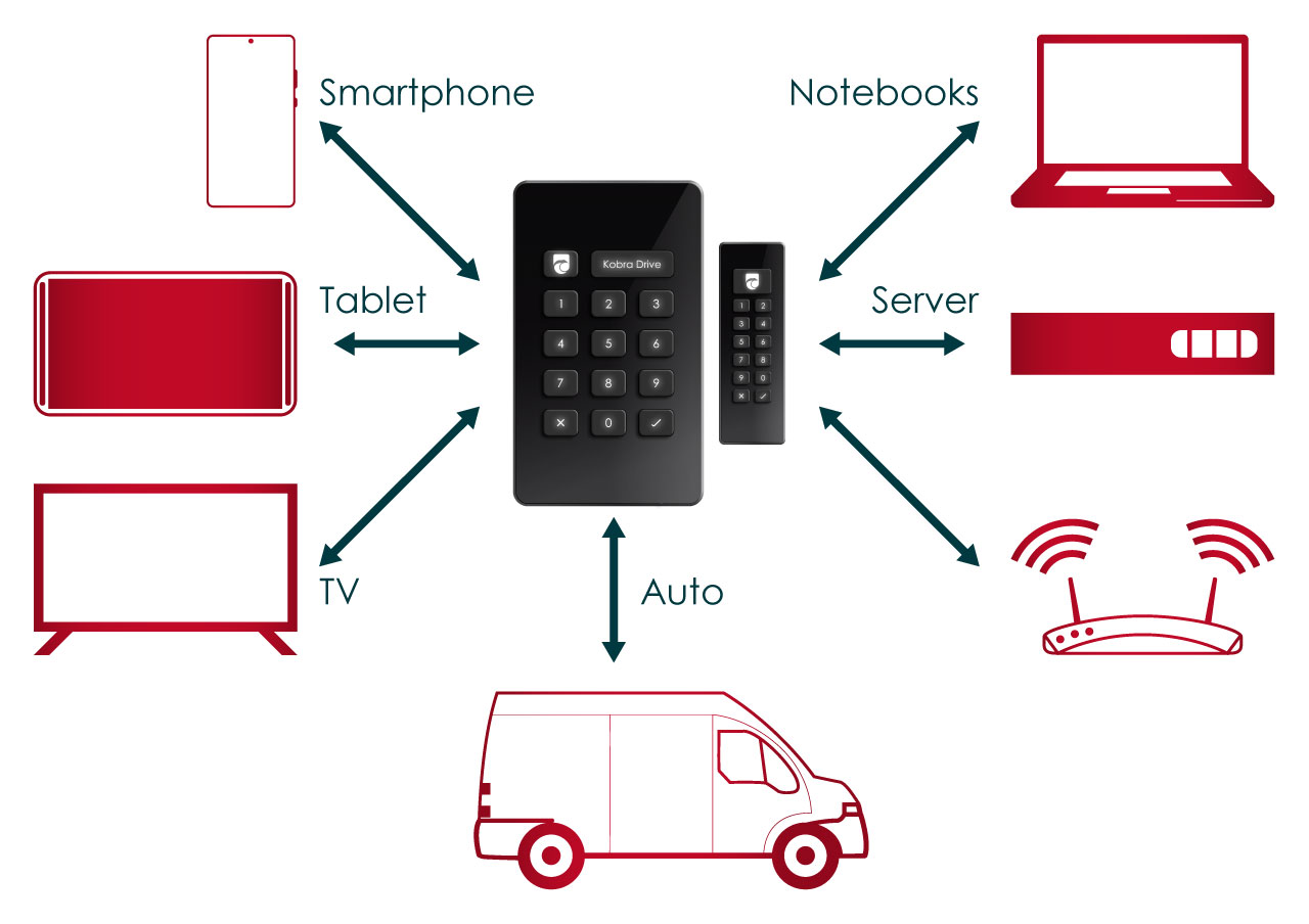 Die KOBRA VS-Datenträger sind verschlüsselte USB-C Speichersticks, Festplatten und SSDs, die dem aktuellen Stand der Technik entsprechen. Sie ermöglichen die DSGVO- und BDSG-konforme Speicherung, Aufbewahrung sowie den sicheren Transport sensibler, personenbezogener und vertraulicher Daten bis zum Geheimhaltungsgrad VS-NfD (Verschlusssache - NUR FÜR DEN DIENSTGEBRAUCH), REST-REINT UE/EU RESTRICTED und NATO RESTRICTED bei Behörden und Unternehmen.